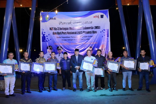 BNEWS - Jaringan Media Siber Indonesia (JMSI) Riau mengelar malam Penganugerahan JMSI Award 2023, bersamaan dengan puncak peringatan HUT JMSI ke 3 tingkat propinsi Riau di tepian Danau Raja, Kota Rengat, Kabupaten Indragiri Hulu Selasa malam, 28 Februari 2023