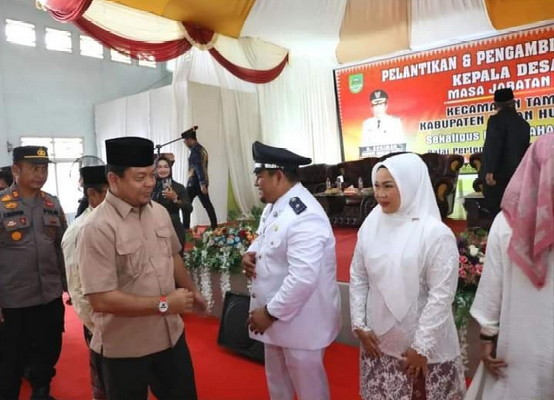 BNEWS - Wakil Ketua DPRD Riau, Syafaruddin Poti, dan anggota Komisi I DPRD Provinsi Riau, Sari Antoni, menghadiri acara pelantikan dan pengambilan sumpah jabatan Kepala Desa (Kades) Mahato masa jabatan 2023-2029.