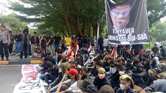 BNEWS - Aliansi Mahasiswa dan Pemuda Riau (AMPR), hari ini, Kamis (16/3/2022) nenggelar demo.ke DPRD Riau. Mereka menuntut tindakan tegas atas kematian 11 pekerja PT PHR dilingkungan perusahaamu
