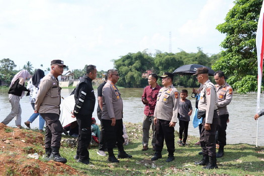 BNEWS - Pastikan kenyamanan masyarakat saat acara Balimau Kasai, Rabu (22/3/2023), Kapolres Kampar AKBP Didik Priyo Sambodo memimpin langsung pengamanan di Sungai Kampar, di area pingiran Sungai Kampar, Pulau Langgini, Kecamatan Bangkinang.