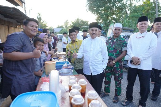 BNEWS - Hadirnya Gubernur Riau (Gubri) Syamsuar di Desa Binuang, Kecamatan Bangkinang Seberang dalam rangka Safari Ramadan 1443 Hijriah, hari ini Senin (27/3/2023) membawa berkah untuk masyarakat yang berjualan takjil.