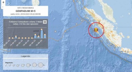 “Tsunami teramati 11 cm, dari data tide gauge Stasiun Tanah Bala Nias Selatan," kata Kepala Pusat Gempa Bumi dan Tsunami BMKG Daryono, Selasa (25/4/2023).