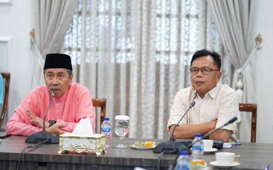 BNEWS - Gubernur Riau (Gubri), Syamsuar, menerima audiensi Pemerintah Kabupaten (Pemkab) Kepulauan Meranti di ruang rapat rumah dinas Gubri, di Pekanbaru, Jumat (5/5/2023).