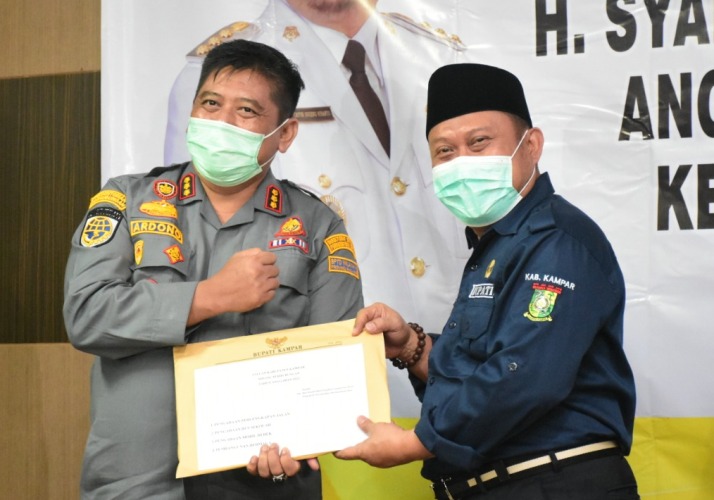 Selain itu Bupati Kampar juga menyampaikan ditengah Pandemi Virus Covid-19 Kabupaten Kampar masih terus berupaya membangun di segala bidang, terutama Infrastruktur dan juga upaya penanggulangan penyebaran Covid-19 di Kabupaten Kampar.
