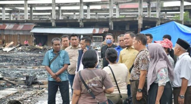 BNEWS - Wakil Ketua DPRD kota Pekanbaru, Tengku Azwendi Fajri, langsung turun ke lapangan, melihat kondisi pedagang dan Pasar Cik puan pasca terbakar pada Minggu (19/2/2023) lalu.