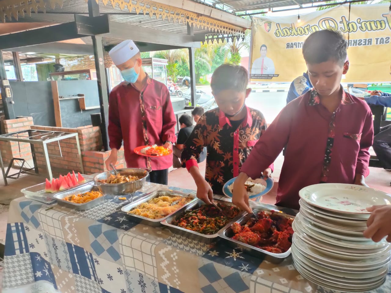 Di sini disiapkan 100 porsi makan siang gratis bagi warga Bangkinang yang disajikan setelah pelaksanaan shalat Jumat.