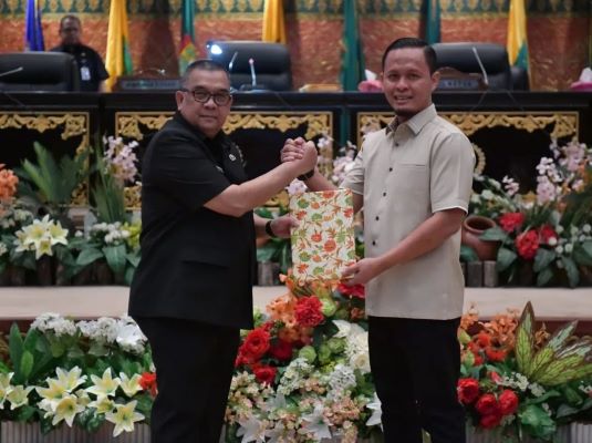 PEKANBARU - DPRD Provinsi Riau menggelar Rapat Paripurna dengan beberapa agenda, di Ruang Rapat Paripurna DPRD Provinsi Riau, Kamis (8/6/2023). Rapat yang dipimpin oleh Wakil Ketua DPRD Provinsi Riau Agung Nugroho ini membahas beberapa agenda sekaligus.