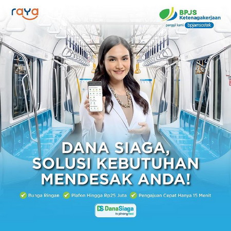 Dana Siaga BPJS Ketenagakerjaan ini merupakan salah satu manfaat layanan tambahan yang bisa didapatkan pekerja formal maupun non-formal. Dana Siaga merupakan pinjaman dana yang bisa diberikan melalui aplikasi Jamsostek Mobile (JMO) yang menggandeng bank milik negara (Himbara) serta Bank Raya.