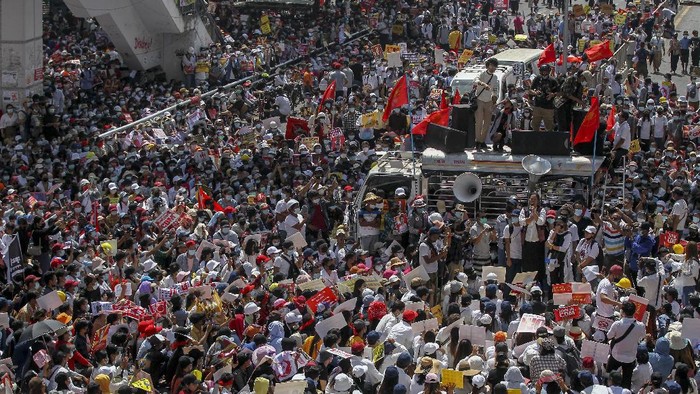 Seperti dilansir Reuters, Minggu (21/2/2021), militer tidak mampu memadamkan demonstrasi dan kampanye pembangkangan sipil terhadap kudeta dan penahanan pemimpin terpilih Aung San Suu Kyi dan lainnya. Bahkan janji militer untuk melakukan pemilu tidak membuat pengunjuk rasa gentar menyuarakan demokrasi.