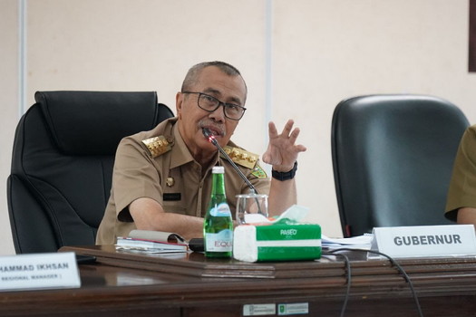 Gubernur Riau (Gubri) Syamsuar secara langsung memimpin rapat, didampingi oleh Kepala Bappeda Litbang Provinsi Riau Emri Juli Harnis dan Manager Millennium Challenge Account-Indonesia (MCA-Indonesia) Regional Riau, Muhammad Ikhsan, di Ruang Rapat Bappeda Litbang Provinsi Riau, Senin (03/07/2023).