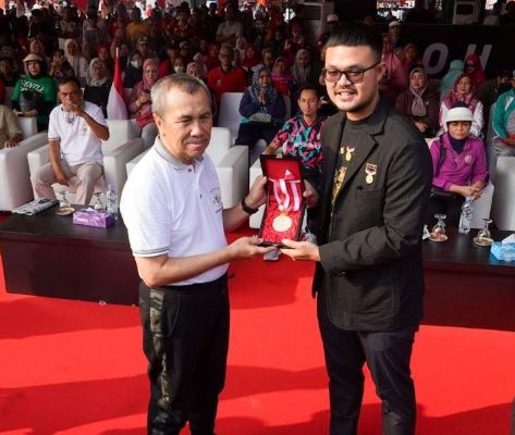 Penghargaan Rekor MURI tersebut diberikan langsung oleh Customer Relations Manager Museum Rekor Dunia Indonesia (MURI), Lutvi Syah Pradana kepada Gubernur Riau (Gubri) Syamsuar, dalam acara gerak jalan santai sekaligus pemecahan Rekor MURI mie goreng sagu terbanyak di Halaman Kantor Gubernur Riau, Minggu (30/7/2023).