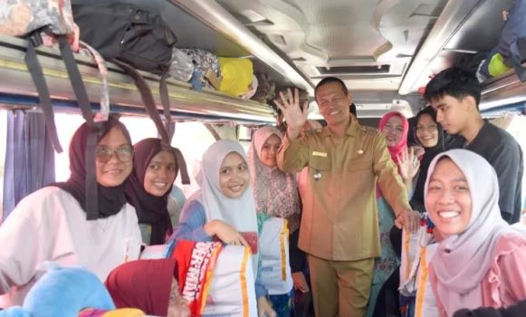 BNEWS - Sebanyak 21 orang mahasiswa program Satu Keluarga Satu Sarjana (Saga Saja) dilepas oleh Wali Kota Pariaman, Genius Umar, hari ini Rabu (9/8/2023) dari halaman Balaikota Pariaman.