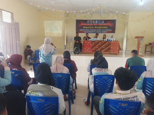 BNEWS - Sat Narkoba Polres Kampar memberikan penyuluhan tentang bahaya Narkoba dan bagaimana kampung bebas Narkoba, di Aula Kantor Desa Sipungguk, kecamatan Salo, kabupaten Kampar, Rabu (16/7/2023).