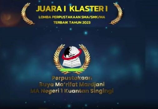 BNEWS - Provinsi Riau berhasil meraih Juara Petama Lomba Perpustakaan Sekolah kluster 1 tingkat nasional. Penghargaan ini diperoleh oleh Perpustakaan Buya Ma'rifat Mardjani MAN 1 Kabupaten Kuantan Singingi (Kuansing).