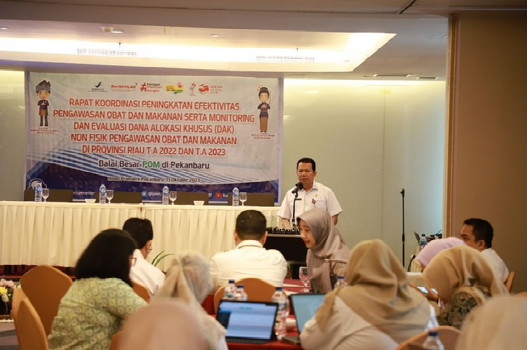 BNEWS - Balai Besar Pengawas Obat dan Makanan (BBPOM) Kota Pekanbaru menggelar rapat koordinasi (Rakor) peningkatan efektivitas pengawasan obat dan makanan, Rabu (11/10/2023).