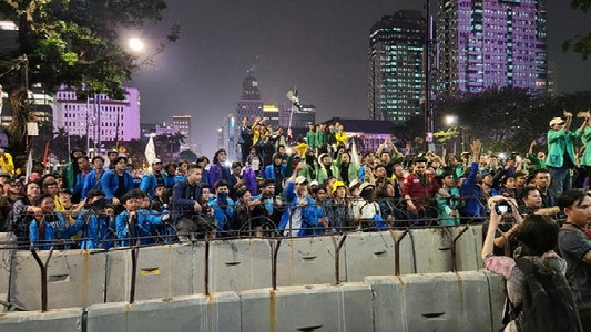 BNEWS - Demo mahasiswa yang tergabung dalam BEM SI masih bertahan di Patung Kuda, Jakarta Pusat. Mereka meminta sejumlah massa aksi yang diamankan segera dibebaskan.