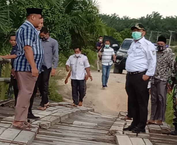 TAPUNG HILIR - Bupati Kampar dan rombongan meninjau jembatan dan jalan di Desa Sikijang, usai membuka Musrenbang Kecamatan Tapung Hilir, Rabu (24/2/2021).