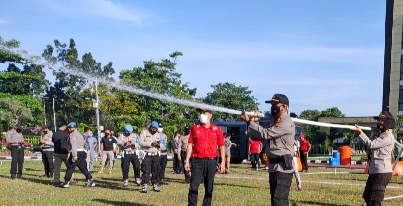 PEKANBARU - Kepolisian Daerah (Polda) Riau menggelar pelatihan penanganan kebakaran hutan dan lahan (karhutla) bagi personil kepolisian, Kamis (25/2/2021), di Mapolda Riau, Pekanbaru, bekerjasama dengan PT Riau Andalan Pulp and Paper (RAPP).
