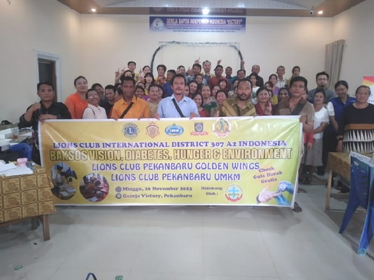 BNEWS - Ratusan warga gereja GBII Victory bersama Ikatan Keluarga Nias Palas (IKNP), terlihat antusias melakukan pengobatan gratis yang ditaja oleh Gereja Baptis Independen Indonesia (GBII) Victory bekerjasama dengan Lions Club (LC) Pekanbaru, di Jalan Sepakat Atas kelurahan Sri Meranti, Minggu (26/11/2023).