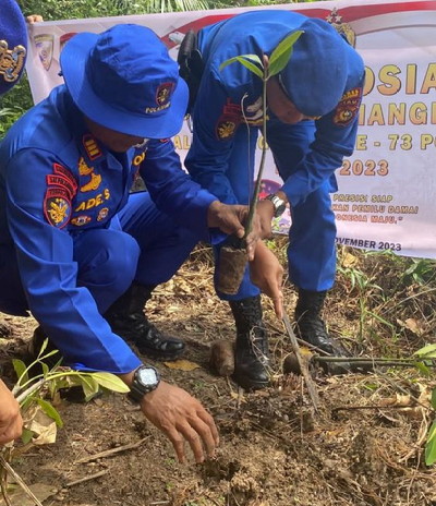 BNEWS - Polair Polres Pelalawan menanam pohon mangrove sebagai bagian dari rangkaian kegiatan HUT Pol Airud di pesisir pantai, untuk menjaga lingkungan dari abrasi.