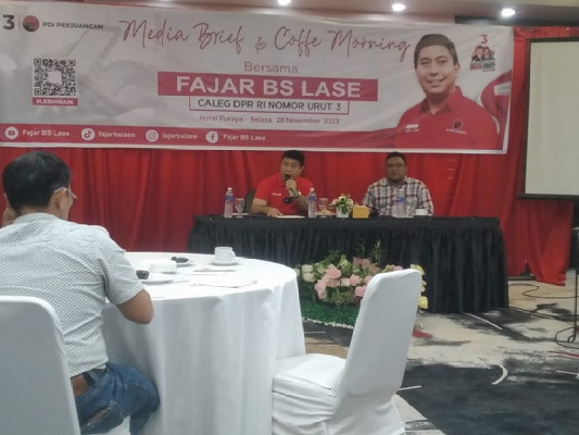 BNEWS - Hari pertama kampanye Pemilu, dimanfaatkan oleh Fajar BS Lase untuk konferensi Pers di Furaya Hotel Pekanbaru, Riau, Selasa (28/11/2023). Dihadiri sejumlah awak media, dialog dengan kader PDIP itu cukup menarik.