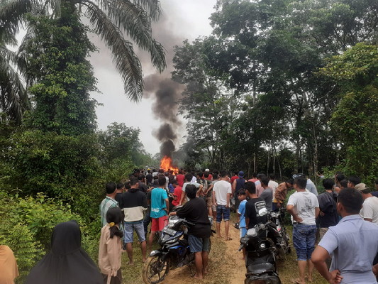 "Setelah itu, massa mengeluarkan 2 ekor kerbau dari mobil dan secara spontan membakar Mobil tersebut dikarenakan sudah sering terjadi pencurian sapi dan kerbau di Desa Muara Jalai tersebut.