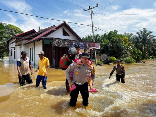 "Siang ini, arus sungai yang telah menutupi jalan semakin deras dan dalam. Kita turun membantu evakuasi pengguna jalan raya, khususnya pengendara sepeda motor serta penumpangnya," kata Kapolres Inhu, AKBP Dody Wirawijaya, melalui Kasat Lantas Polres Inhu, Selasa (8/1/2024).