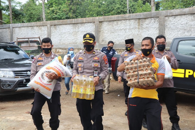 "Kita dari tim Warung Jumat Polda Banten kembali menyalurkan puluhan paket sembako kepada santri yang berada di Pondok Pesantren Tebu Ireng hari ini, Jumat (26/2/2021).