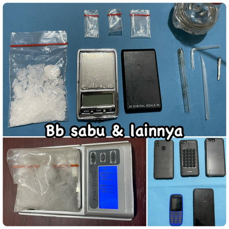 Selanjutnya tim menemukan lagi 3 bungkus plastik klip bening diduga bekas berisi narkotika jenis sabu (habis pakai), 1 buah alat hisap bong, 1 unit timbangan, 1 sendok terbuat dari pipet.