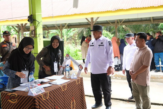 BNEWS - Bupati Siak Alfedri didampingi Kapolres Siak AKBP Asep Sujarwadi, Dandim 0322 Siak Letkol Riyanto Budi Nugroho dan Kajari Siak Moch Eko Joko Purnomo, melakukan pemantauan pelaksanaan Pemilu serentak tahun 2024 di sejumlah TPS di tiga Kecamatan yaitu Tualang, Minas dan Kandis, Rabu (14/2 2024).