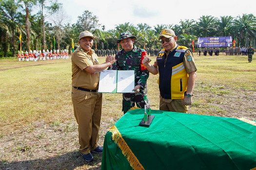 BNEWS - Bupati Siak, Alfedri, menjadi pembina upacara pembukaan TNI Manunggal Membangun Desa (TMMD) ke 119 tahun 2024, yang dilaksanakan di lapangan sepak bola Kampung Sungai Tengah, Kecamatan Sabak Auh, Selasa (20/2/2024).