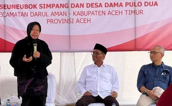 BNEWS - Menteri Sosial (Mensos) Tri Rismaharini menyerahkan 11 unit rumah bantuan tahan gempa untuk masyarakat Desa Seunebok Simpang dan Desa Dama Pulo Dua, Kecamatan Darul Aman, Kabupaten Aceh Timur. Tiga unit diantaranya dari hibah Kementerian Sosial (Kemensos) dan delapan unit lagi dari dana kemanusiaan Kompas
