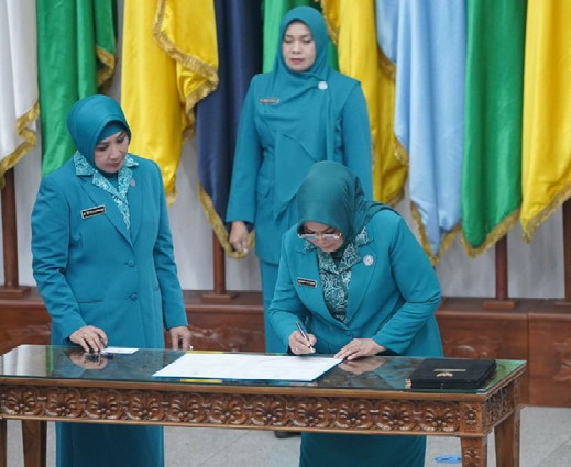 "Saya, Ketum TP PKK dengan ini resmi melantik nyonya Andrias Hariyanto sebagai Penjabat Ketua TP PKK Provinsi Riau untuk masa bakti sesuai dengan masa jabatan Penjabat Gubernur Riau," ujar Tri dalam prosesi pelantikan.