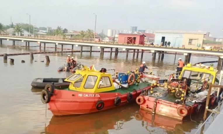DUMAI -Terjadi kebocoran pipa PT Chevron Pacific Indonesia (CPI) di Dermaga #4 Pelabuhan Dumai, Provinsi Riau, mengakibatkan minyak mentah tumpah ke laut. Kejadiannya pada Sabtu (27/2/2021) sekitar pukul 14.50 WIB.
