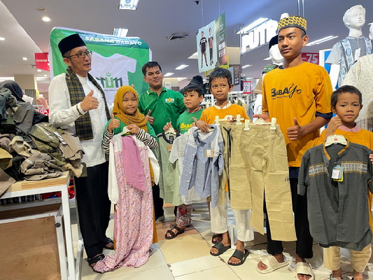 BNEWS - Suasana lantai 3 Plaza Andalas Padang, Sabtu pagi (6/4/2024) terdengar bergemuruh saat sebanyak 500 yatim dan dhuafa peserta BABAYO atau Balanjo Baju Rayo, meneriakan yel yelnya secara serempak.