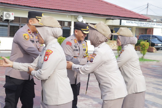 Di penghujung acara, seluruh personel bersalaman dengan Kapolres serta sesama personel Polres Inhu dan PNS Polres Inhu. Kegiatan tersebut dihadiri juga para Kabag, para Kasat, para Perwira, personel, PNS dan THL Polres Inhu.**/iin