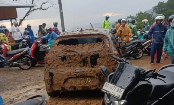 BNEWS - Sitinjau Lauik di Sumatera Barat (Sumbar) longsor, menyebabkan dua mobil tertimbun. Jalur Padang - Solok, putus. Dengan demikian, Padang terisolasi. Tumpukan kendaraan sudah tak terhindarkan.