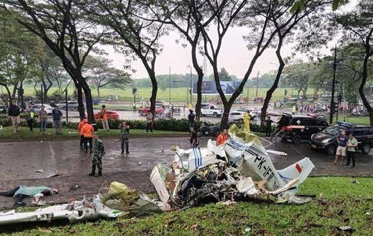 Pesawat latih ini jatuh di kawasan BSD, Serpong, Tangerang Selatan. Dilaporkan ada korban dalam peristiwa ini.