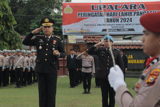 BNEWS - Polres Kampar gelar upacara bendera peringati Hari Lahir Pancasila, Sabtu (1/6/2024) di lapangan upacara Mapolres Kampar dengan Tema "Pancasila Jiwa Pemersatuan Bangsa Menuju Indonesia Emas Tahun 2045".