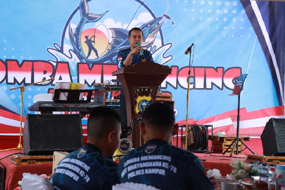 BNEWS - Kapolres Kampar AKBP Ronald Sumaja membuka lomba mancing yang digelar di Galatama Telaga Biru Kecamatan Tambang, dalam rangka menyambut Hari Ulang Tahun Bhayangkara Ke-78.