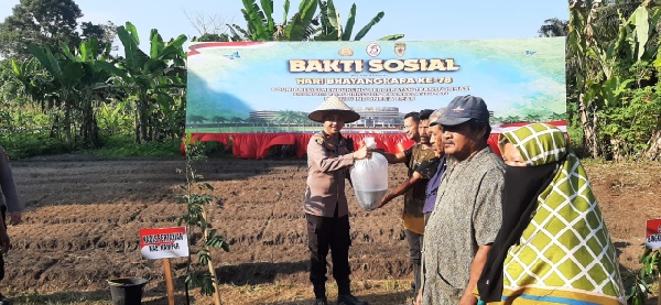 BNEWS - Memperingati Hari Bhayangkara ke 78, Polres Kampar melakukan penanaman pohon di Jl. Akper RT.003 RW.003 Dusun II Sei Baung, Desa Ridan Permai Kecamatan Bangkinang Kota, Kabupaten Kampar, Kamis (27/6/2024).
