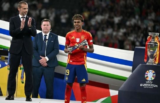 BNEWS - Lamine Yamal, pemain muda Spanyol meraih penghargaan Pemain Muda Terbaik Euro 2024, setelah tampil gemilang dalam turnamen, termasuk di laga final melawan Inggris yang mengantarkan Spanyol meraih gelar juara Eropa untuk keempat kalinya dengan kemenangan 2-1.