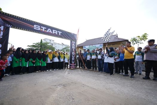 Berkabarnews.com, Dayun - Bupati Siak Afni Z melepas peserta jalan santai dalam rangka peringatan Hari Ulang Tahun (HUT) ke-80 Persatuan Guru Republik Indonesia (PGRI) dan Hari Guru Nasional yang digelar di Embung Terpadu Kampung Dayun, Kecamatan Dayun, Sabtu (22/11/2025).