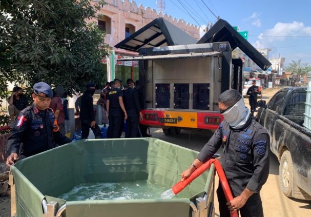 “Polri hadir untuk memastikan kebutuhan dasar masyarakat tetap terpenuhi di tengah bencana. Penyaluran air bersih dan masker ini merupakan bentuk kepedulian kami agar warga tetap sehat dan bisa beraktivitas dengan aman,” ujarnya.