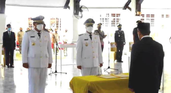 BNEWS - Gubernur Riau (Gubri) Syamsuar hari ini, Rabu (2/6/2021) melantik Bupati dan Wakil Bupati Kabupaten Kuantan Singingi (Kuansing), Andi Putra dan Suhardiman Amby. Pelantikan dilaksanakan di Gedung Daerah Riau, Jalan Diponegoro, Pekanbaru.