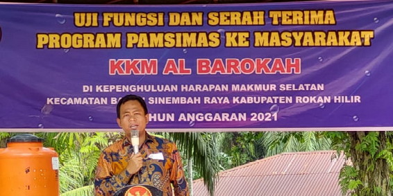 BNEWS - Wakil Bupati Rokan Hilir (Wabup Rohil), H Sulaiman SS MH meresmikan program Penyediaan Air Minum dan Sanitasi Berbasis Masyarakat (PAMSIMAS) 5 Kepenghuluan, di Kecamatan Bagan Sinembah Raya (Basira), Kamis (12/08/2021).