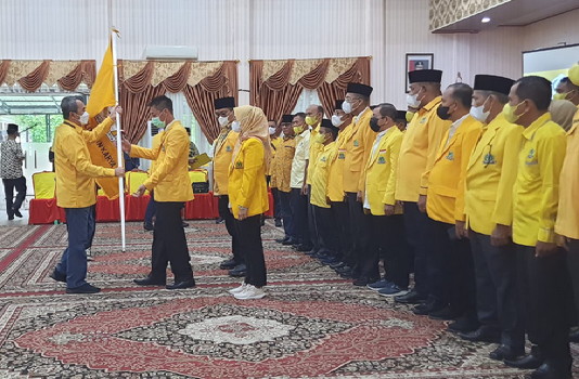 BNEWS - Ketua DPD l Partai Golkar Riau H Syamsuar secara langsung melantik kepengurusan DPD ll Golkar Kabupaten Rokan Hilir (Rohil) masa bakti 2021-2025 yang di pimpin Afrizal Sintong, Minggu (17/4/2022).