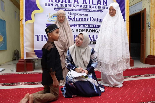 Tiba di Masjid Al Ikhlas, Desa Kuala Kilan yang menjadi lokasi kunjungan, Bupati Rezita disambut hangat oleh anak-anak yang datang menyalami.