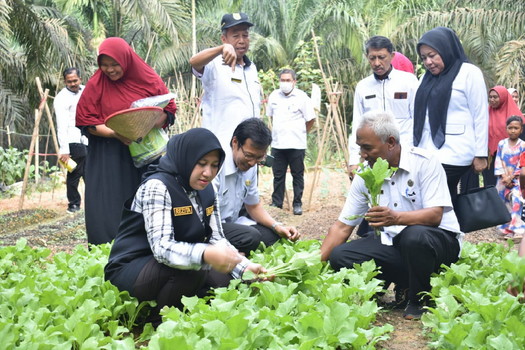 Di Desa Belimbing, Bupati beserta rombongan menyerahkan Bantuan Langsung Tunai (BLT) Dana Desa dan meninjau lahan pertanian yang di kelola oleh Kelompok Wanita Tani Berkah Tualang.