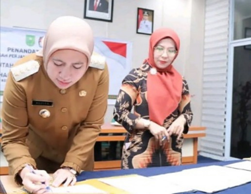 BNEWS - Bentuk komitmen Pemerintah Kabupaten memastikan Pilkada serentak 2024 berjalan lancar, Bupati Indragiri Hulu, Rezita Meylani Yopi SE, bersama Ketua Komisi Pemilihan Umum (KPU) Inhu, Yeni Mairida, SE menandatangani Kesepakatan Naskah Perjanjian Hibah Daerah (NPHD) Selasa (21/11/2023) di ruang Narasinga lt. II Kantor Bupati Kab Inhu.